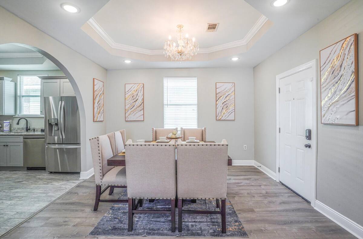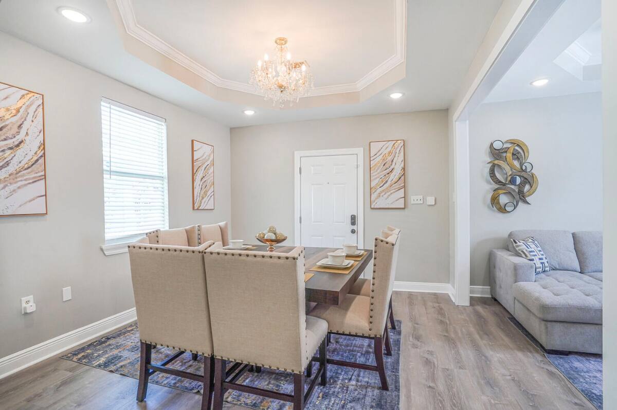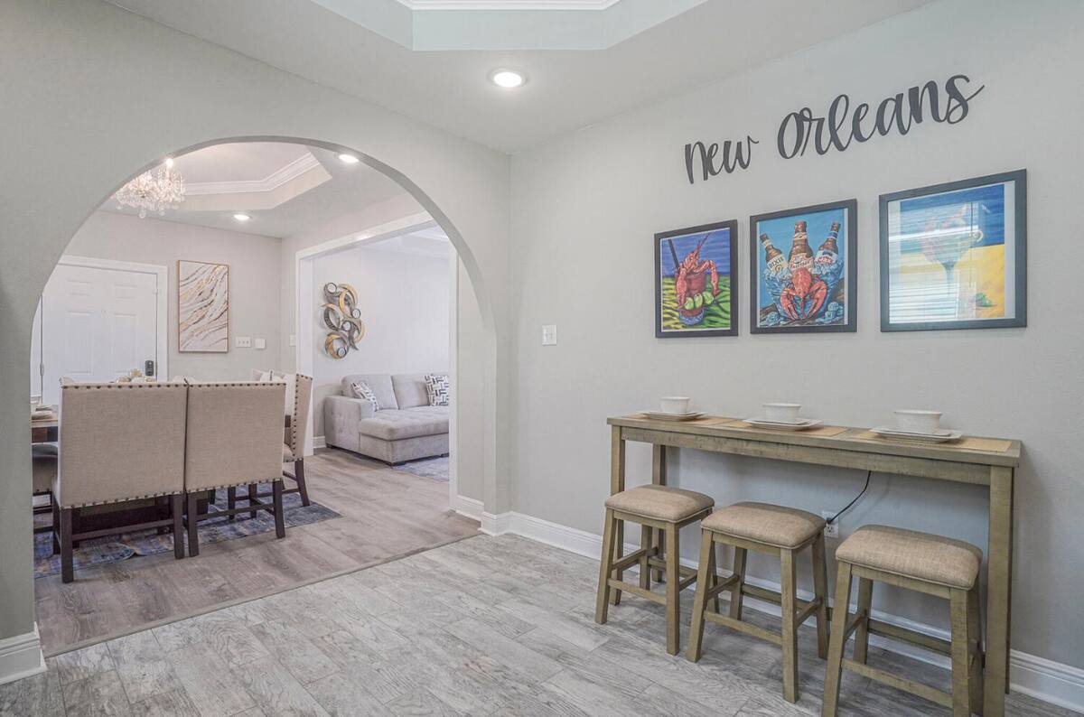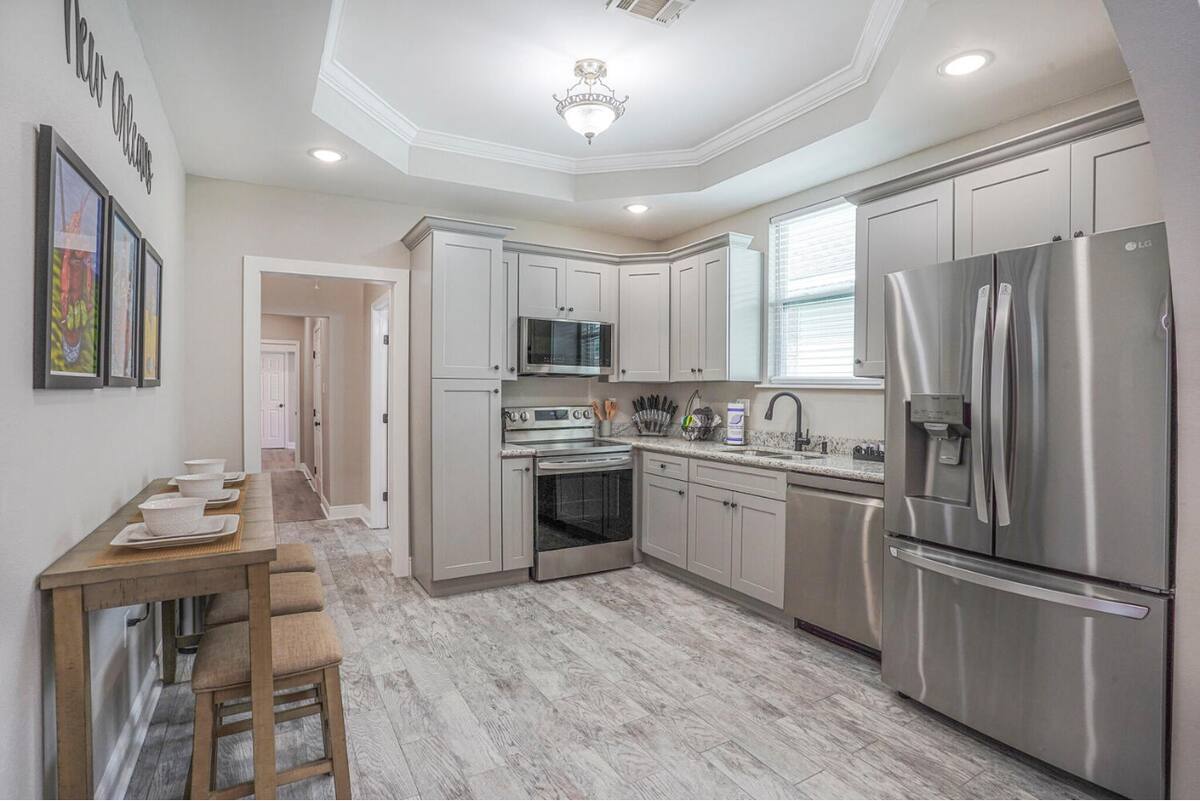 5 Bedrooms 3 Full Baths. Off street parking driveway. Beautifully decorated, Spacious open floor plan, stocked kitchen, large dining table/area, Plush queen & king beds and soft linen await you! Each bedroom is unique in its own way while keeping that New Orleans feel throughout the home.