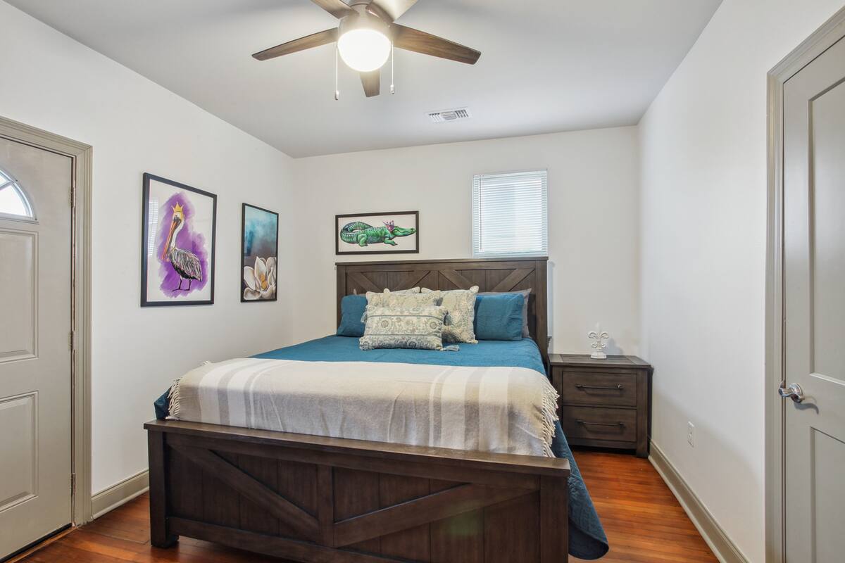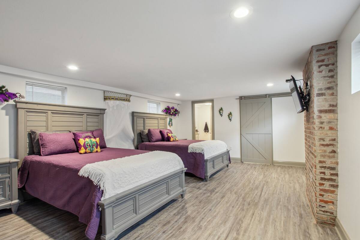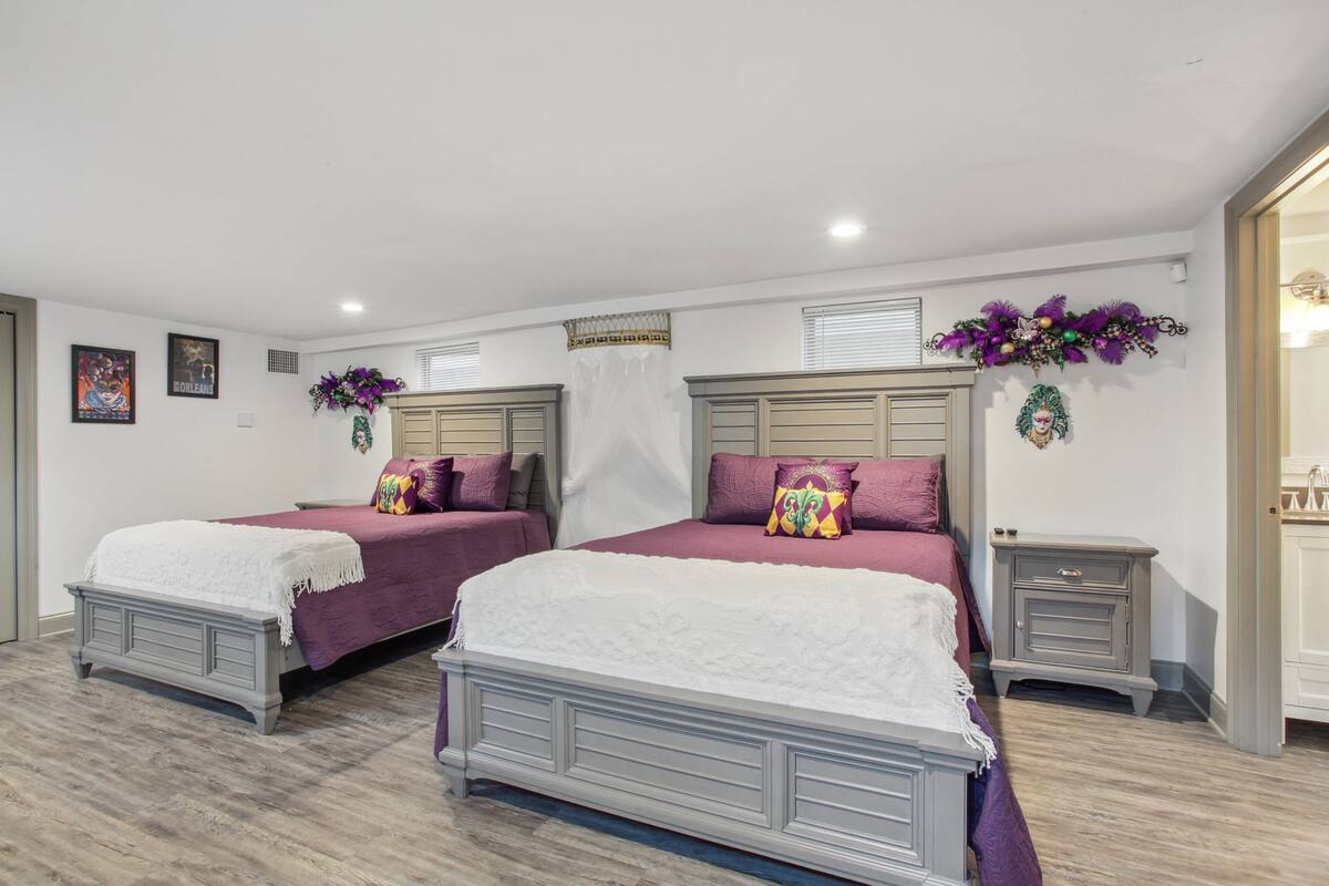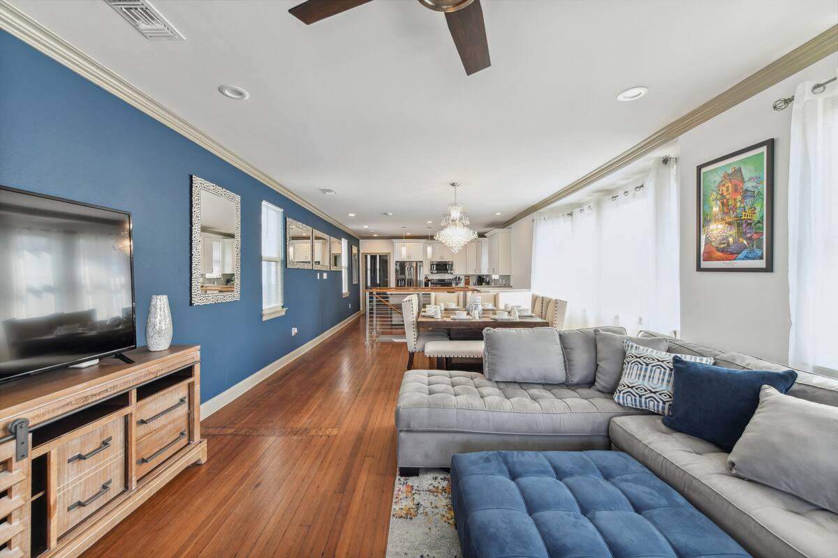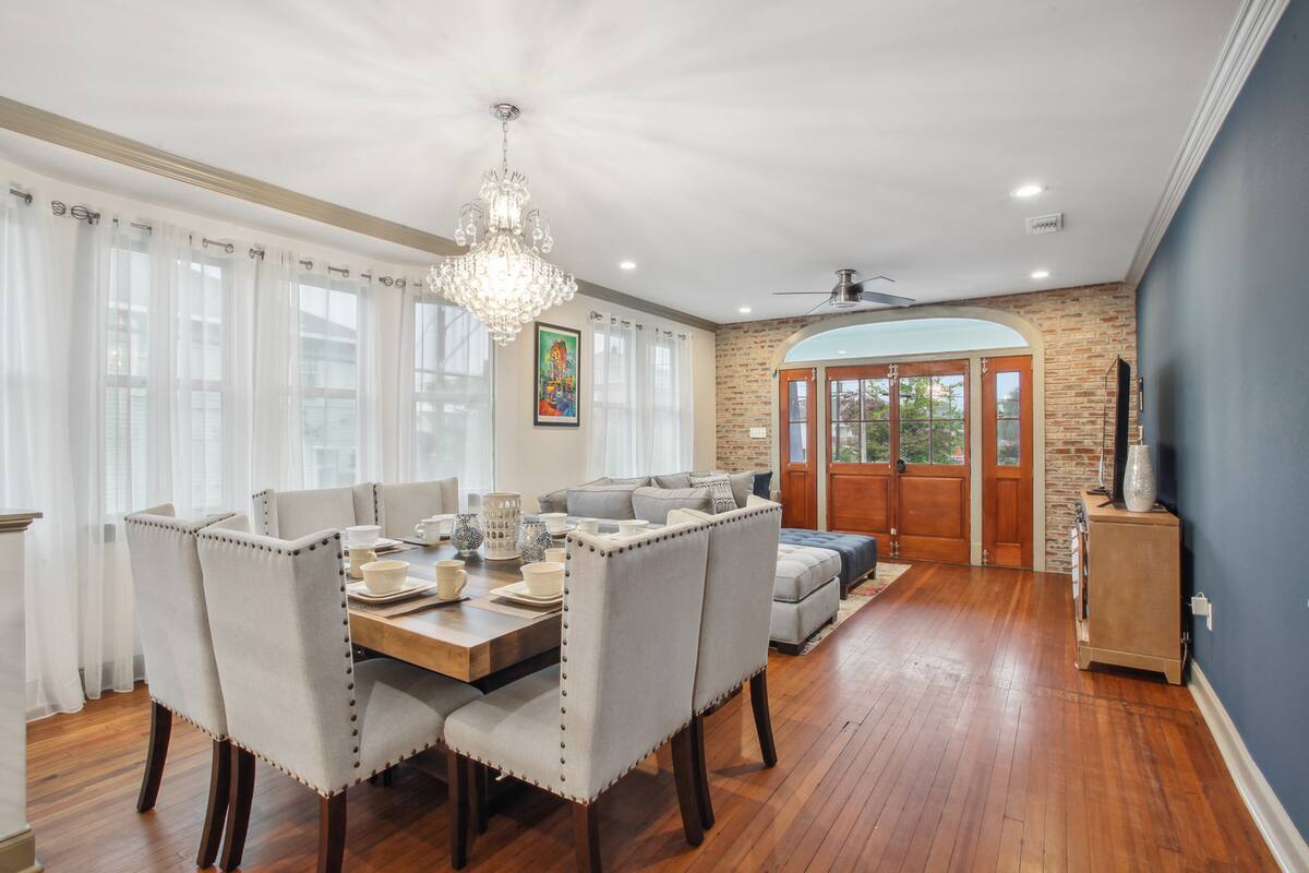 Stylish 5 bedroom 3 bath New Orleans style home with 2 car garage off street parking. Beautifully decorated, Spacious open floor plan, stocked kitchen, large dining table/area, Plush queen & king beds and soft linen await you! Each bedroom is unique in its own way while keeping that New Orleans feel throughout the home.