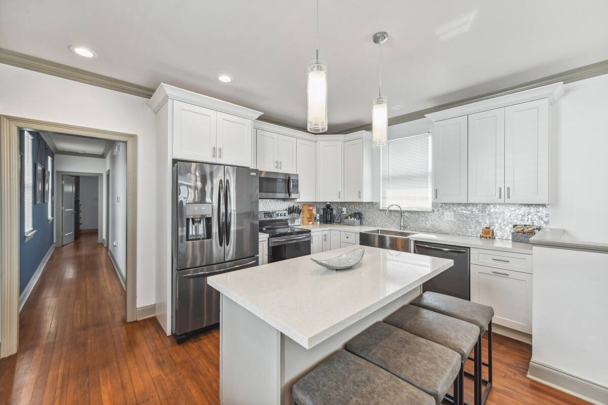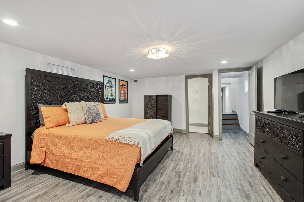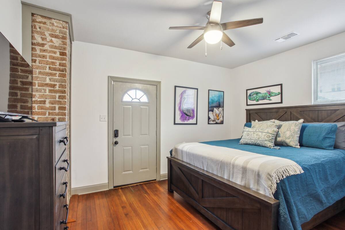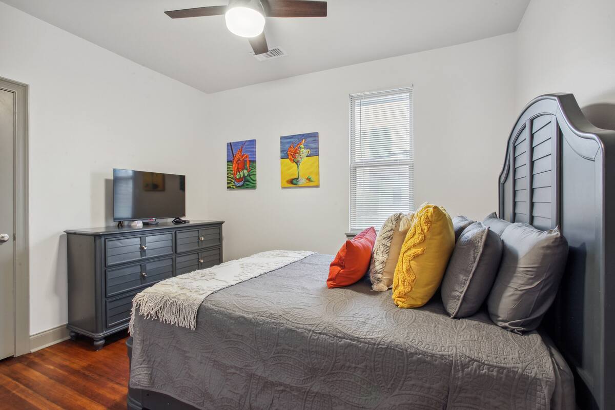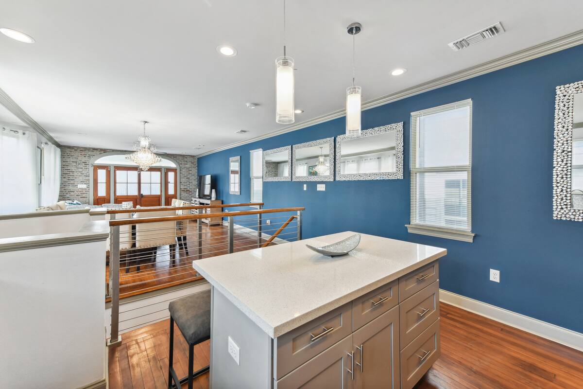 Stylish 5 bedroom 3 bath New Orleans style home with 2 car garage off street parking. Beautifully decorated, Spacious open floor plan, stocked kitchen, large dining table/area, Plush queen & king beds and soft linen await you! Each bedroom is unique in its own way while keeping that New Orleans feel throughout the home.